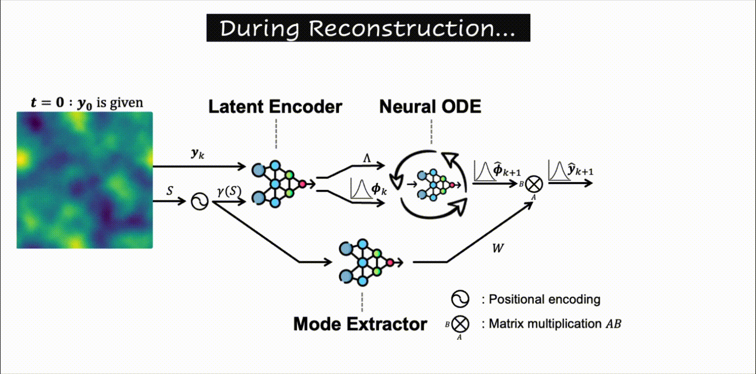 Importantly, only the initial state is needed to roll out future dynamics, enabling resolution-agnostic,